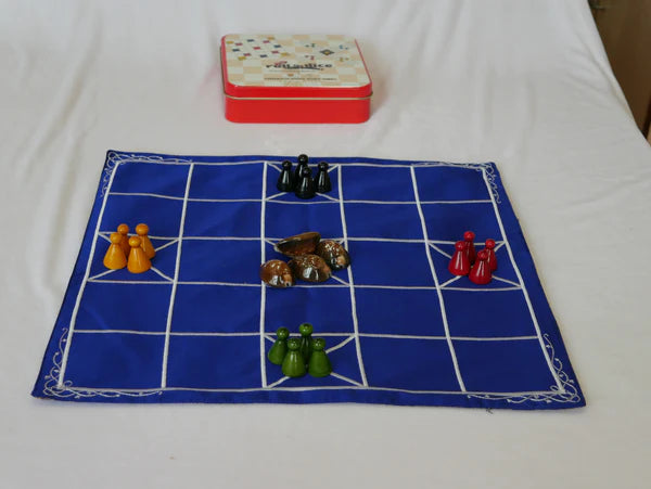 The set comes in a bright red tin box that not only adds a pop of color to your game evening but also helps keep the game set in great condition for years to come. Whether you're playing with friends and family or looking for a unique gift, the Chowka Bara 5 House game set from Roll the Dice is the perfect choice.