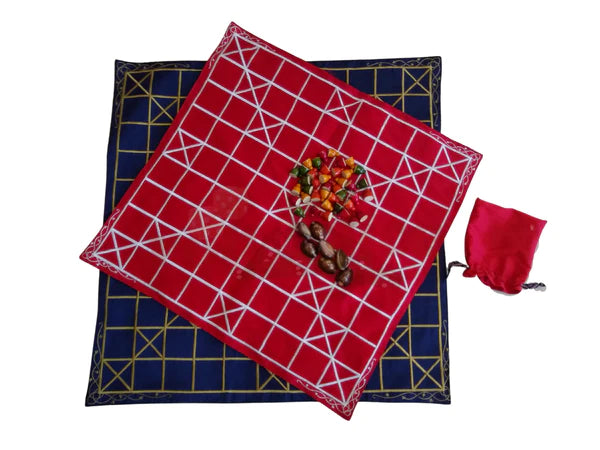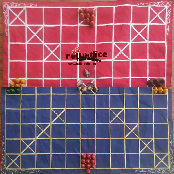 Introducing the ultimate game night accessory, Roll the Dice's Chowka Bara 9 & 11 House Combo Mats. This set includes two high-quality mats, one with 9 houses and the other with 11 houses, giving you the flexibility to play with small or large groups. Both mats are made of durable material, ensuring they can withstand repeated use. The mats are easy to roll up and store, making them perfect for game night at home or on the go.