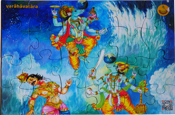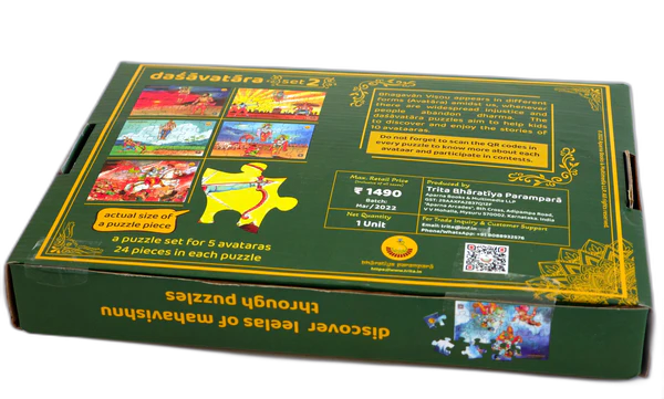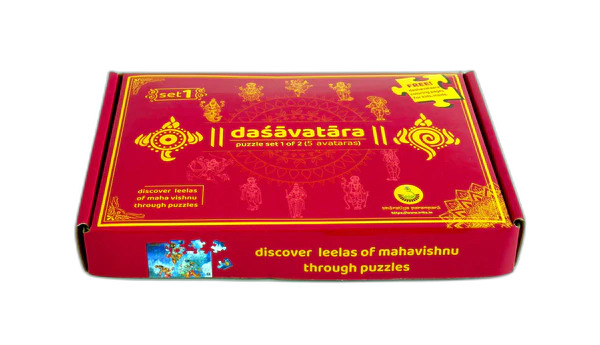 Each of the two “dashavatara” sets contain jigsaw puzzles depicting 5 avataras of mahavishnu