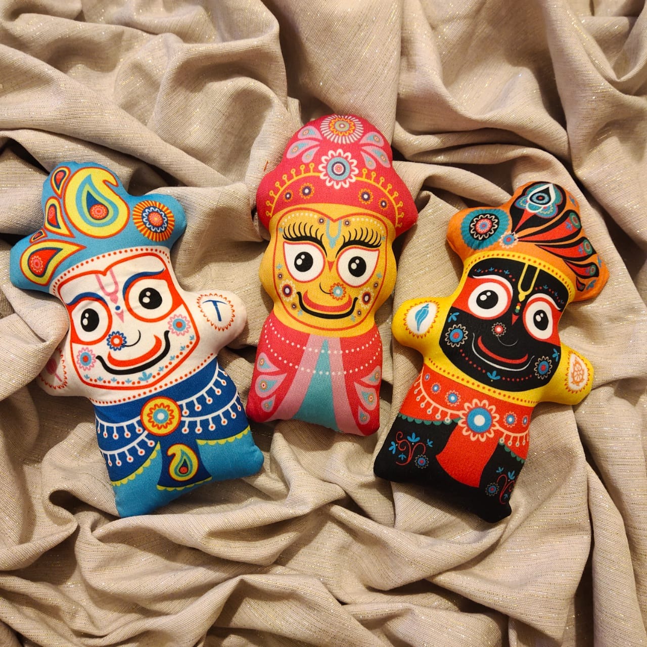 Bring the mystique of Ancient India into your child's life. Embrace the stories, culture, and spirituality with our Jagannath, Baldev, and Shubhadra doll set.