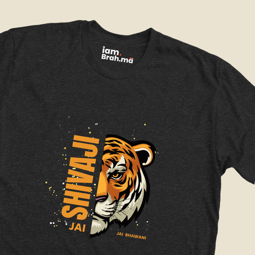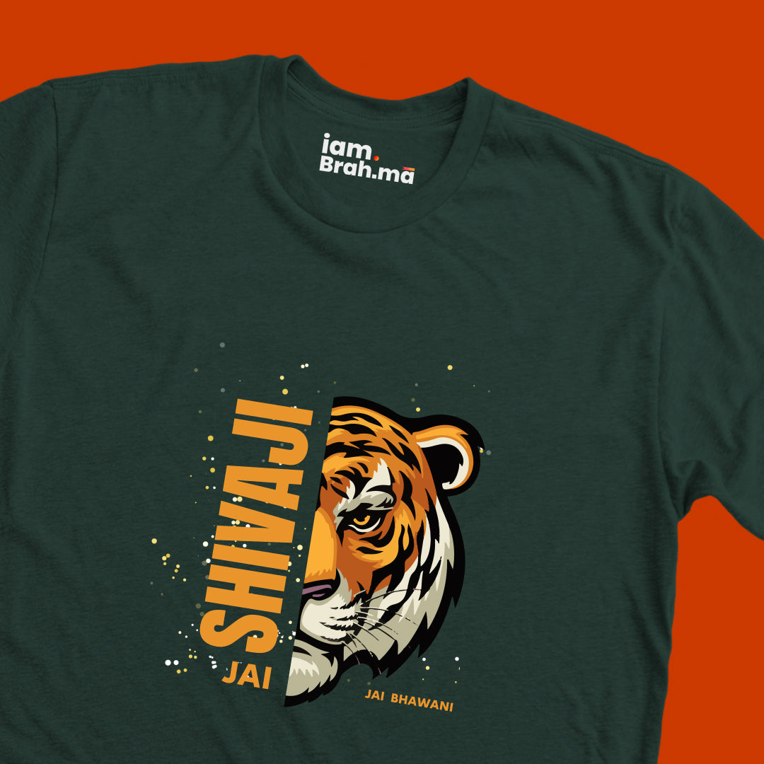 The Jai Shivaji Jai Bhawani design channels the fearless energy of Chhatrapati Shivaji Maharaj, the embodiment of valor and vision, and his eternal devotion to Maa Bhawani — the source of strength behind every Maratha roar.