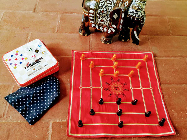 Experience the thrill and excitement of Navakankari like never before with Roll the Dice's Nine Men's Morris game board set. Order now and get ready to roll the dice!